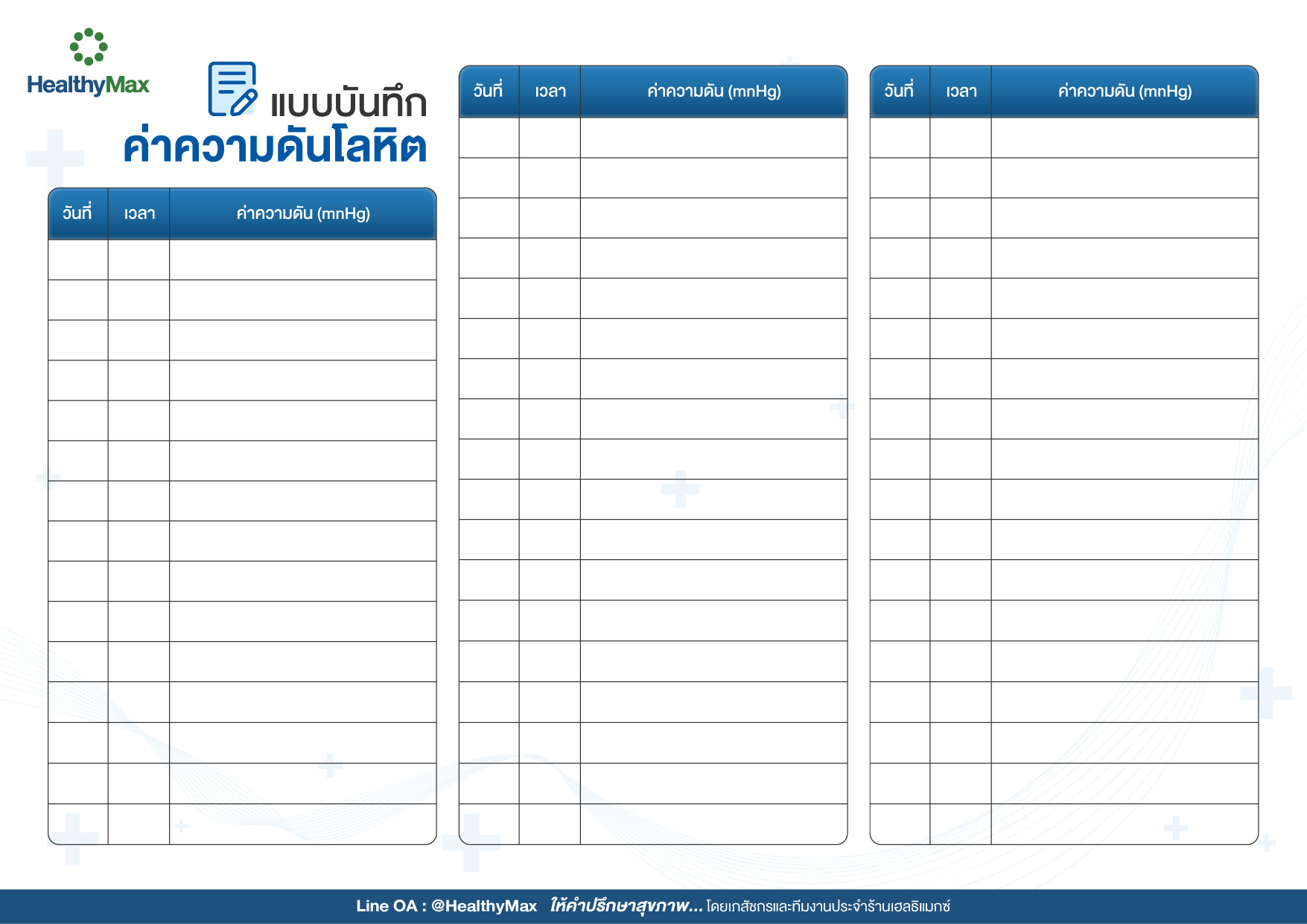 ตารางบันทึก ค่าความดันโลหิต