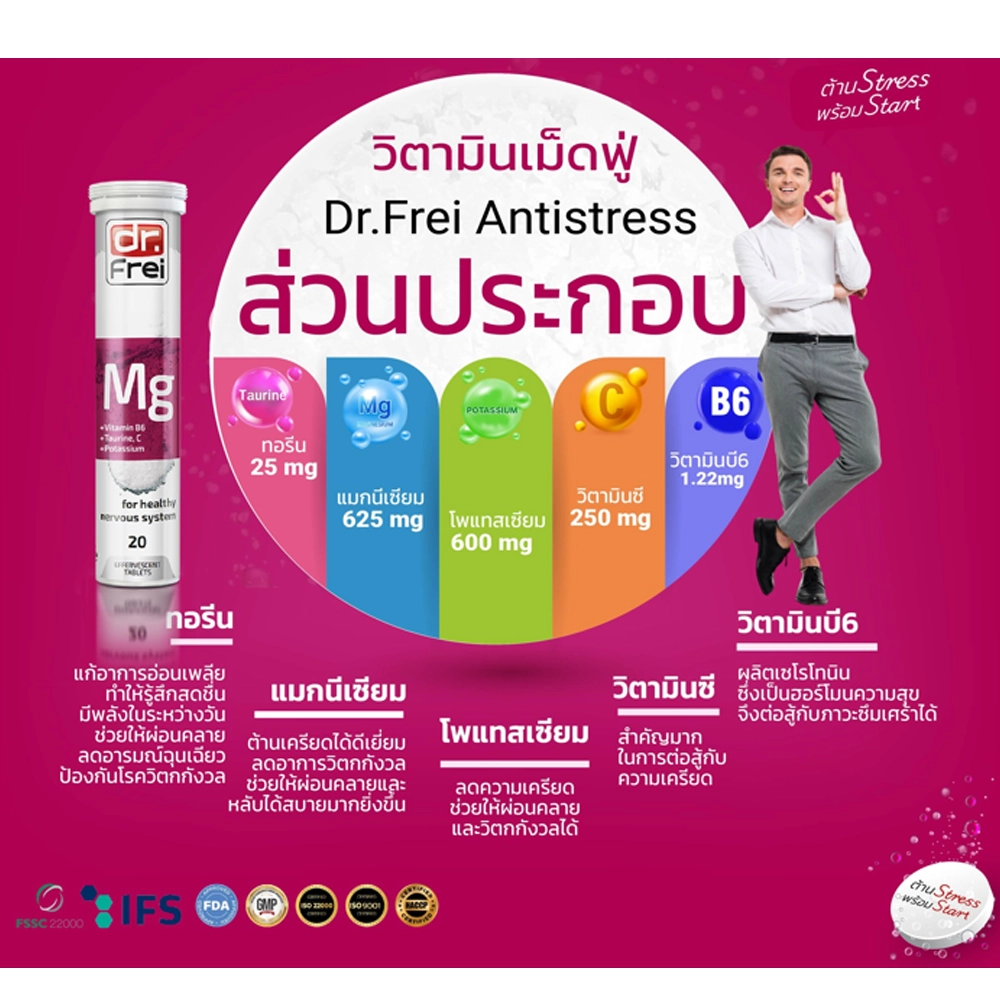 ผลิตภัณฑ์เสริมอาหาร แมกนีเซียมผสมวิตามินบี 6, ทอรีน, วิตามินซี, โพแทสเซียม ตรา ดร.ฟราย