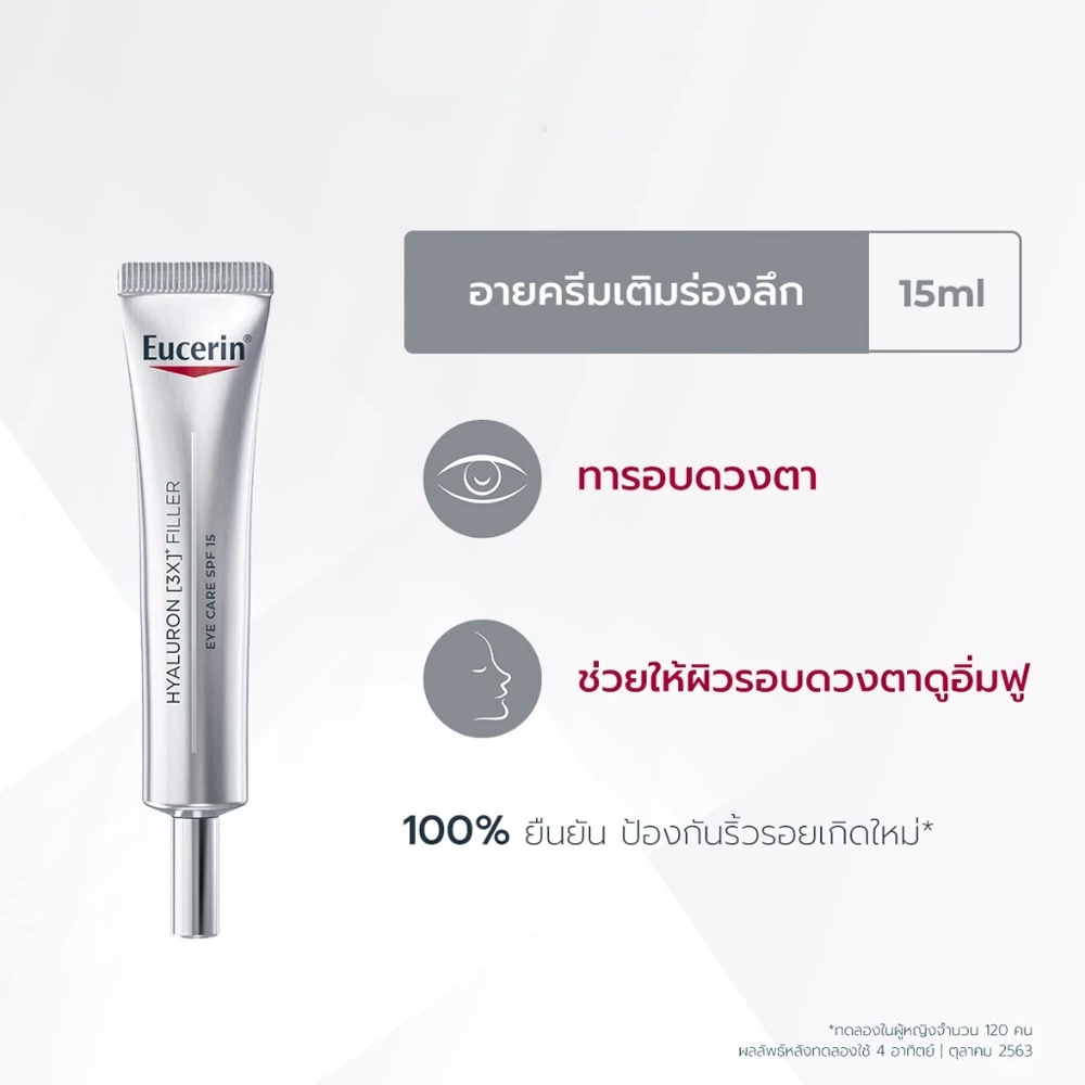 - ยูเซอริน ไฮยาลูรอน (3เอ็กซ์)* ฟิลเลอร์ อาย แคร์ เอสพีเอฟ 15 ผลิตภัณฑ์บำรุงผิวรอบดวงตา ผิวที่เปลี่ยนไปตามวัยเมื่ออายุมากขึ้น การผลิตกรดไฮยาลูโรนิกและคอลลาเจนของผิวจะลดลง ส่งผลให้ผิวสูญเสียความกระชับ เกิดริ้วรอย และดูมีอายุขึ้น