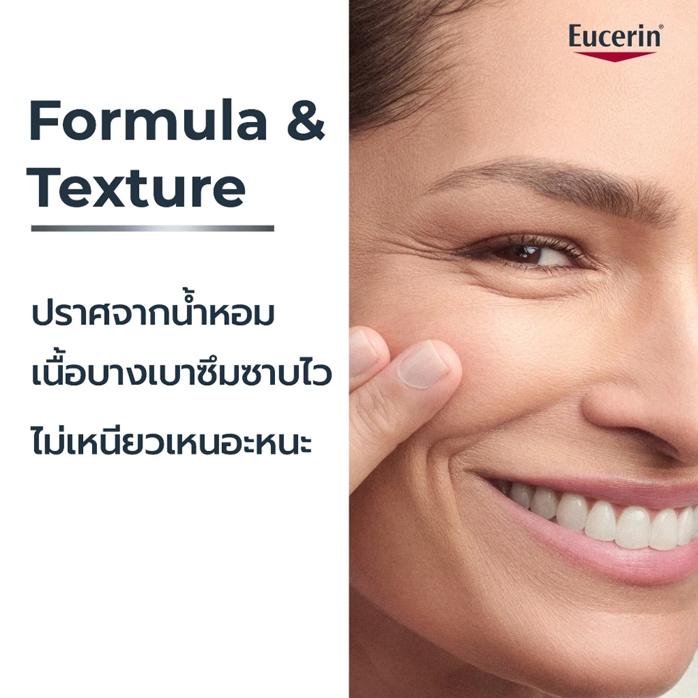 - สูตร เนื้อครีมบางเบา ซึมซาบเร็ว ปราศจากน้ำหอม ผ่านการทดสอบแล้วว่าปลอดภัยสำหรับการใช้รอบดวงตา และปลอดภัยสำหรับผู้ใส่คอนแทคเลนส์