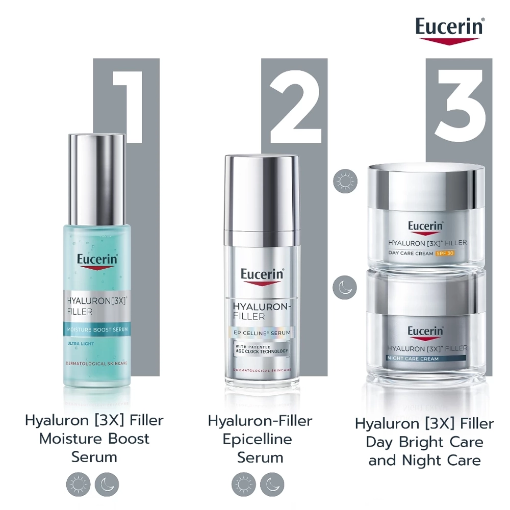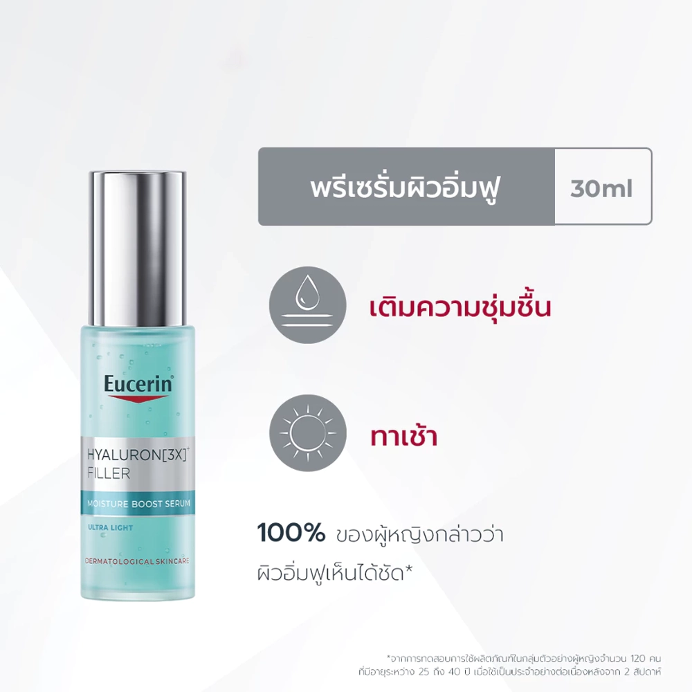- ยูเซอริน ไฮยาลูรอน (3เอ็กซ์)* ฟิลเลอร์ มอยส์เจอร์ บูสท์ เซรั่ม ผลิตภัณฑ์บำรุงผิวหน้า