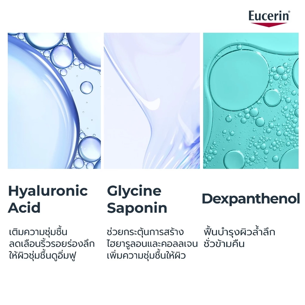 • ยูเซอริน ไฮยาลูรอน (3เอ็กซ์)* ฟิลเลอร์ ไนท์ แคร์ ครีม ผลิตภัณฑ์บำรุงผิวหน้า สูตรกลางคืน  ผิวที่เปลี่ยนไปตามวัยเมื่ออายุมากขึ้น การผลิตไฮยาลูรอนและคอลลาเจนของผิวตามธรรมชาติจะลดลง ทำให้ผิวสูญเสียความแน่นกระชับ เกิดริ้วรอย และแลดูมีอายุ