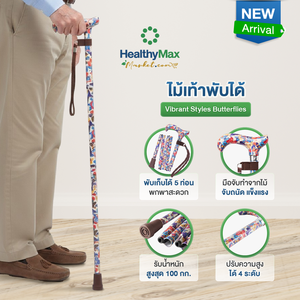 • ไม้เท้าพับได้ แบบสีสันสดใสและลวดลายสวยงาม
