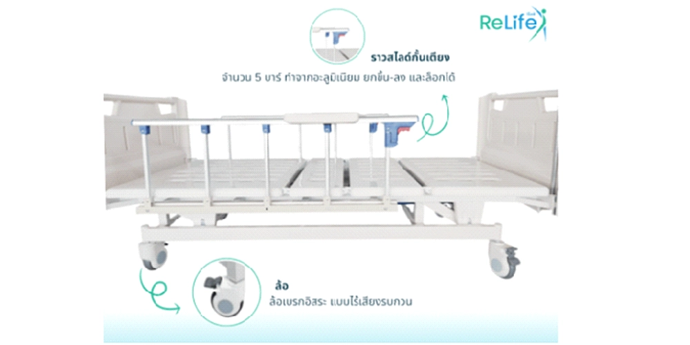 RELIFE เตียง 3 ไกร์ (ราวสไลด์+เสา+โต๊ะ) #M301-C