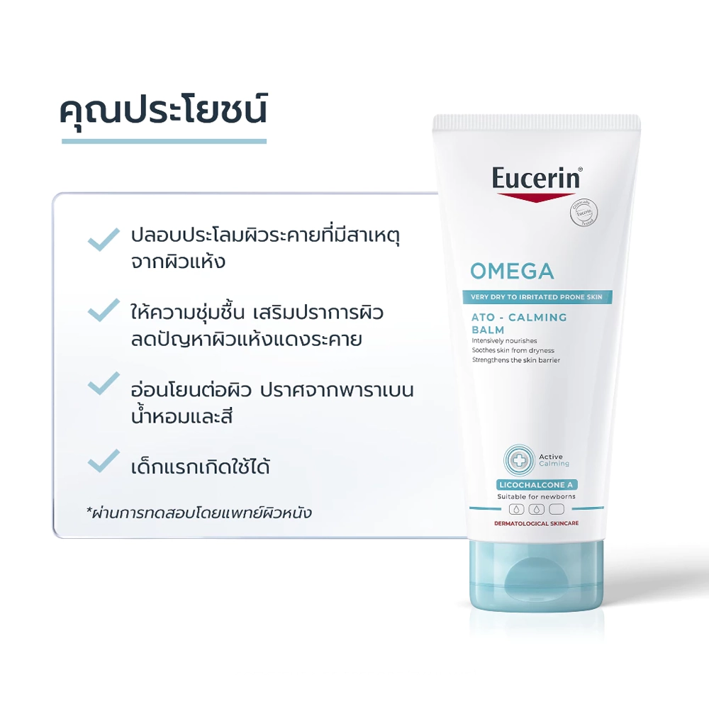ยูเซอริน โอเมก้า บาล์ม เป็นบาล์มบำรุงผิวกายสำหรับผิวแห้ง แดง คัน สามารถใช้ทาเป็นประจำได้ทุกวัน และทาซ้ำได้ในระหว่างวัน ด้วยการออกแบบชนิดพิเศษ ให้เนื้อสัมผัสเบาบาง เกลี่ยง่าย ไม่เหนียวเหนอะหนะและไม่ทิ้งความมันตกค้างที่ผิว ช่วยเติมความชุ่มชื้นให้กับผิว สามารถให้ความชุ่มชื่นได้ทันที ฟื้นบำรุงทำให้ผิวเรียบเนียน พร้อมเสริมสร้างให้ชั้นปกป้องผิวแข็งแรง