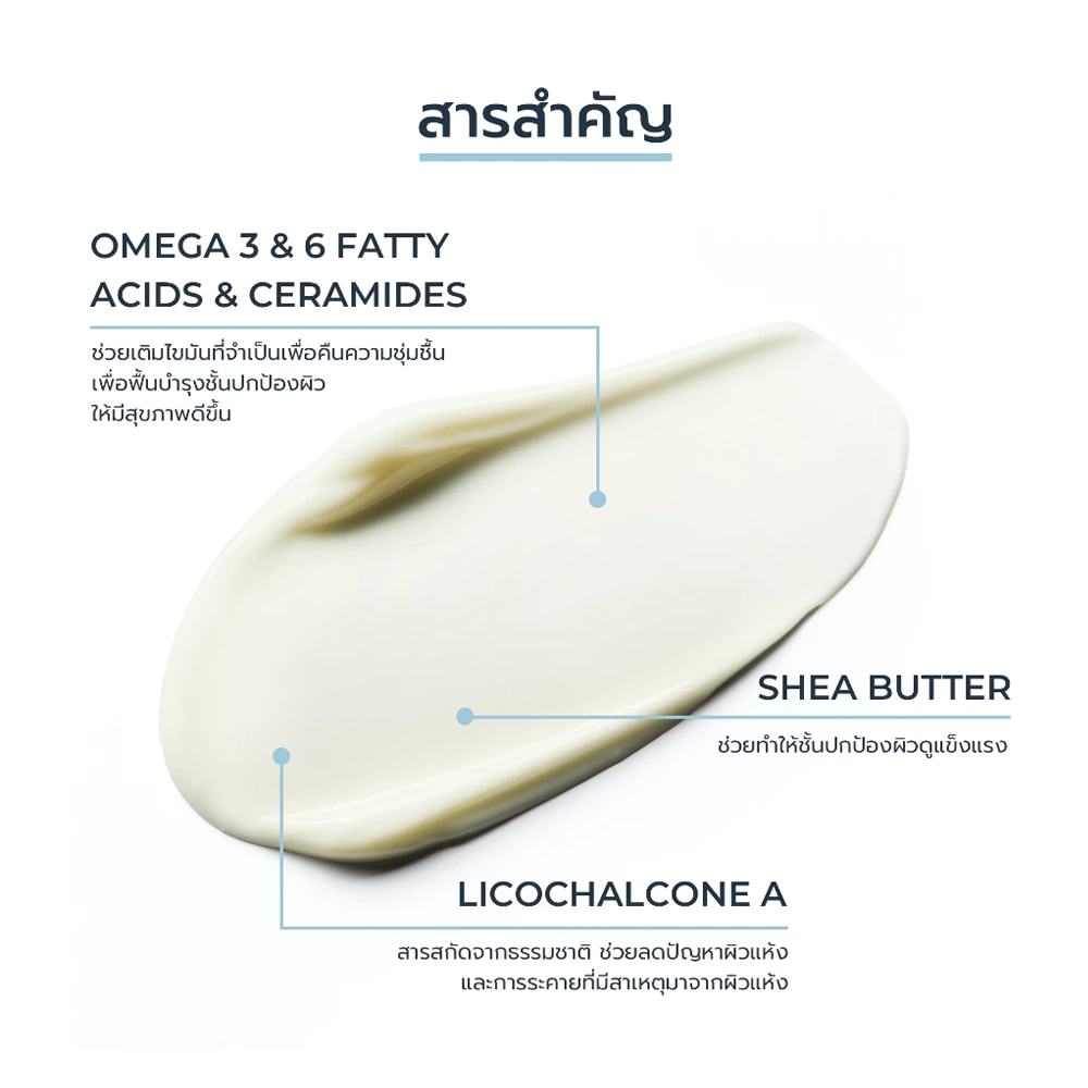 ▸ พร้อมผสาน Omega 3 & 6 fatty acids และ ceramindes ช่วยเติมไขมันที่จำเป็นเพื่อคืนความชุ่มชื้นให้แก่ผิว เพื่อฟื้นบำรุงชั้นปกป้องผิวให้มีสุขภาพดีขึ้น
