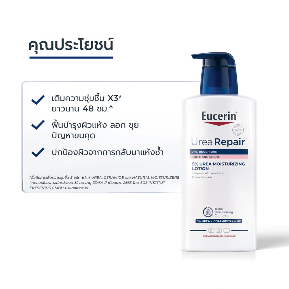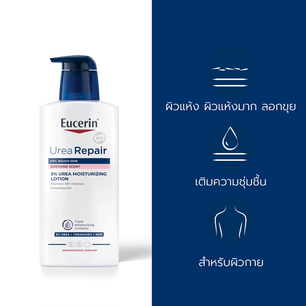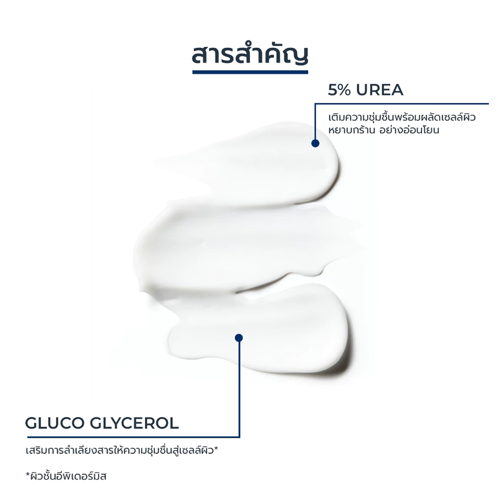 ผลิตภัณฑ์บำรุงผิวกายสำหรับผิวแห้งมาก เป็นขุย อุดมไปด้วย 3 สารสำคัญ ได้แก่ UREA สารให้ความชุ่มชื้น ประสิทธิภาพสูงระดับ Gold Standard ช่วยฟื้นบำรุงผิวแห้งขุยและ NMFs สารให้ความชุ่มชื้นตามธรรมชาติที่มีอยู่ในผิว เสริมเกราะปกป้องผิว พร้อมผสาน: เซราไมด์ที่เป็นไขมันจำเป็นสำหรับผิว ช่วยเสริมชั้นปกป้องผิวให้ดูสุขภาพดี ทั้งยังช่วยเพิ่มความสามารถในการกักเก็บความชุ่มชื้น และ Gluco Glycerol ที่ช่วยเสริมในด้านการลำเลียงน้ำเข้าสู่ผิวชั้นลึกได้เป็นอย่างดี ผิวจึงชุ่มชื้นยาวนาน 48ชั่วโมง โดย 98% ของผู้ใช้ยืนยันผิวกลับมาเนียนนุ่ม ลดปัญหาผิวแห้งขุยได้จริง